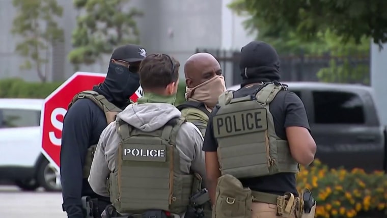 In Downey, another predominantly Latino city southeast of Los Angeles, officials from Downey Memorial Christian Church and others confronted a group of five armed men in plain clothes and tactical gear who “swarmed” a man sitting under a tree in the church’s parking lot, according to church pastor Al Lopez.