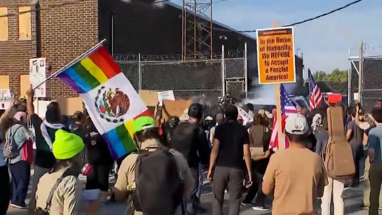 Footage by NBC 5 Chicago shows federal agents deploying tear gas as protesters blocked a vehicle trying to exit the Immigration and Customs Enforcement facility in Broadview, a Chicago suburb.