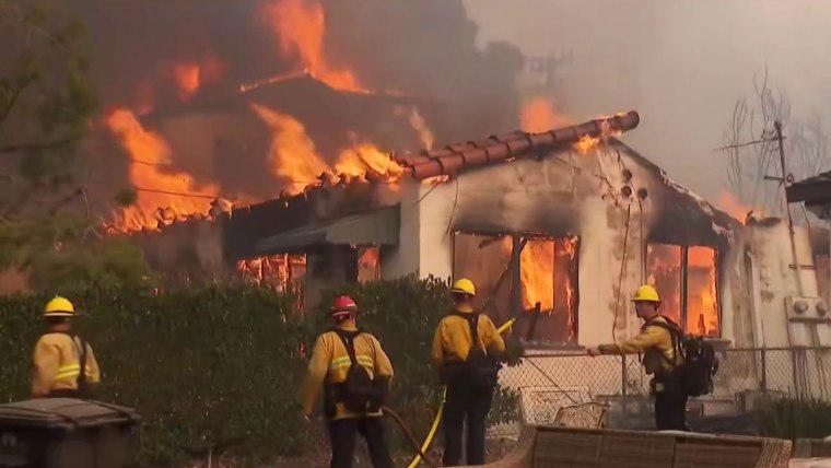 NBC News witnessed U.S. Forest Service firefighters respond to the Palisades Fire, and they also battled the Eaton Fire in Angeles National Forest, where they deployed five large air tankers, 10 firefighting helicopters and dozens of fire engines, according to the publication Government Executive, which covers federal business news.