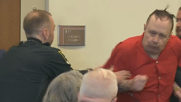 During Monday's hearing in a Florida courtroom, Joseph Zieler, 61, asked to speak with his attorney Kevin Shirley, video from NBC affiliate WBBH of Fort Myers shows. As Shirley bent down to speak with his client, Zieler raised his elbow and hit the man in the face.