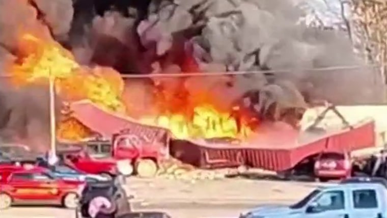 Security cameras caught the moment the blast happened at Jimbo's Auto Repair in Hillsboro, about 50 miles east of Cincinnati. The explosion caused a large fire which took a 45-person fire crew around an hour to suppress, said Paint Creek Joint EMS & Fire District Chief David Manning.
