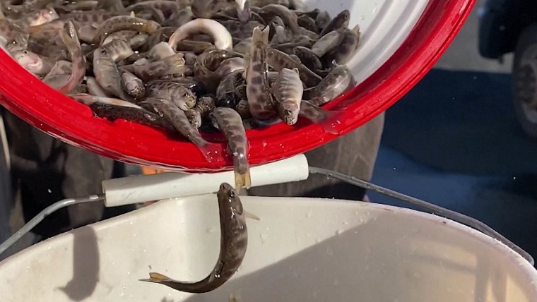 Video shows a small plane taking off near a lake in Utah's Bicknell area. As the plane passes over the lake, a hatch is opened, and thousands of live fish pour out. The cloud of fish fill the sky before they rain down, one by one, to the lake below.