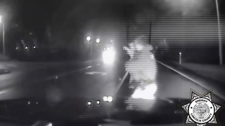 A two-year-old slipped away from his parents and was running down a busy highway when a Lincoln County, Oregon, Sheriff's Deputy rescued him.