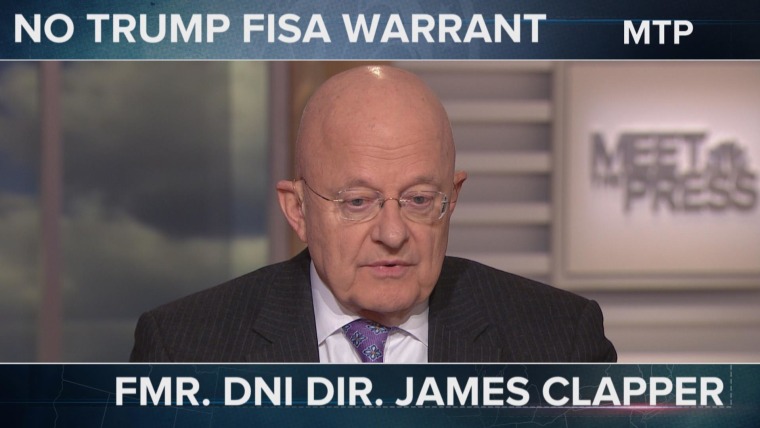 On "Meet the Press," the Obama administration's director of national intelligence, James Clapper, said that, under his watch, "there was no wiretap activity mounted against the president-elect at the time or as a candidate or against his campaign."