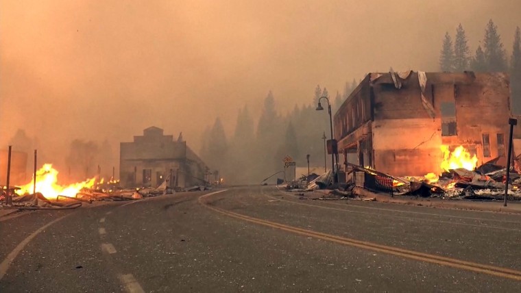 Much of the downtown and some surrounding homes were destroyed, The Associated Press reported. Video shot in the area showed tall trees on fire, flames on both sides of a road and thick heavy smoke. At least one building had only portions of brick walls standing.