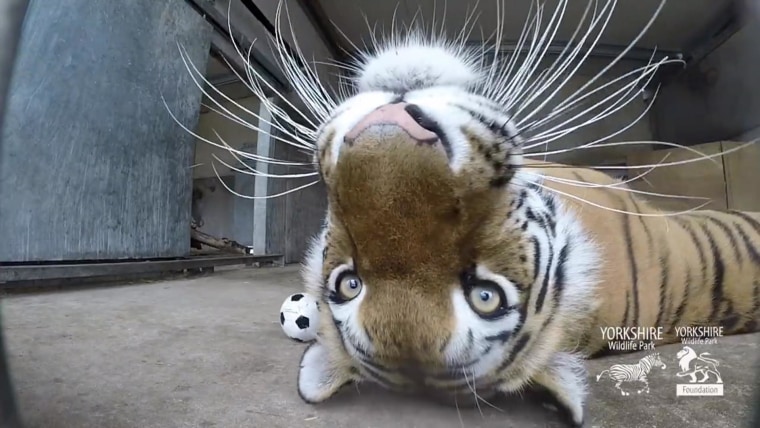 Yorkshire Wildlife Park celebrates the first birthday of tiger cubs Harley, Hope, and Hector.
