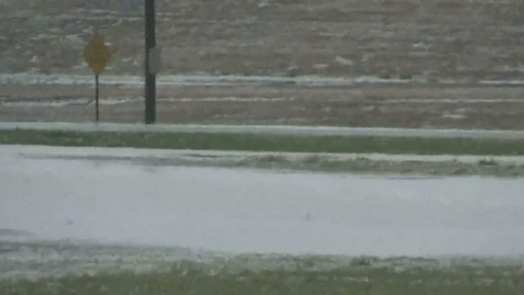 Severe weather rolled through the Midwest packing 60-mile-an-hour winds and dropped up to three inches of hail in parts of Kansas.