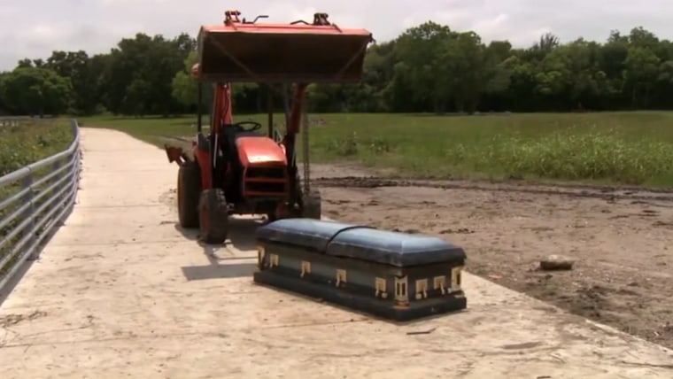 Flood Unearths Casket in Houston
