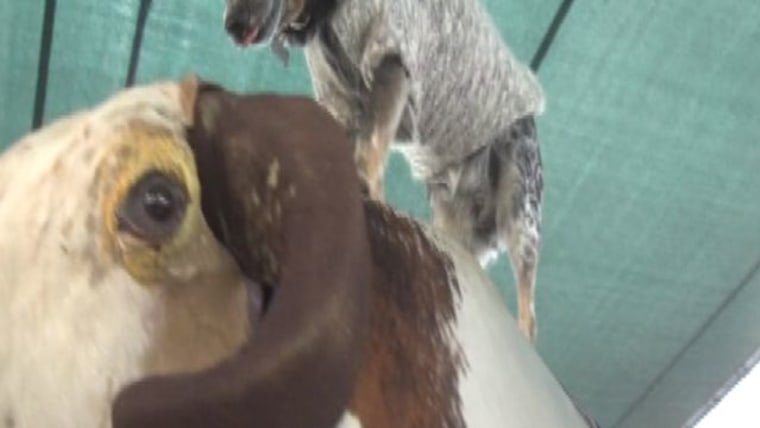 Hailey, a mechanical bull riding cattle dog, is winning fans at the Montana State Fair.