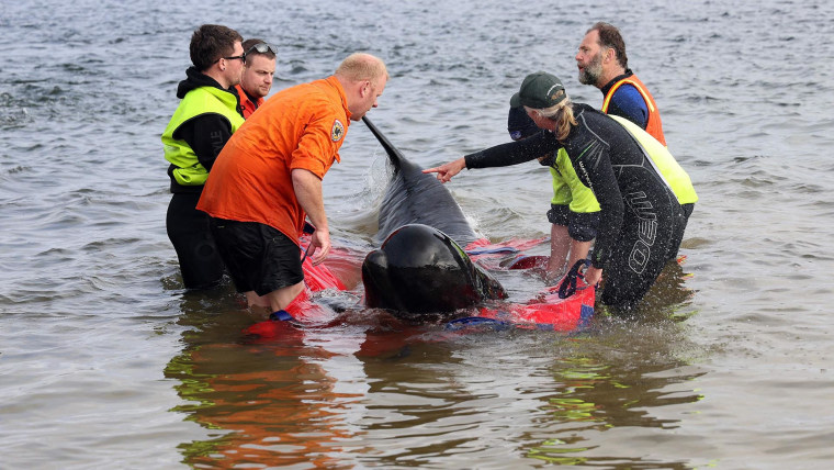 “Of the 35 that were remaining alive this morning, we’ve managed to refloat, rescue and release … 32 of those animals, and so that’s a terrific result,” Clark told reporters late Thursday at nearby Strahan.
