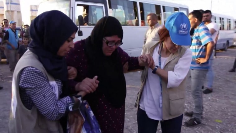 The journey from northern Syria to northern Iraq is only a few hundred miles as the crow flies. But it’s a horrifying and costly ordeal for civilians who cannot predict shifting alliances and rapid troop maneuvers. Many arrived looking exhausted and frightened, shocked by the dozens of reporters who greeted their 12 buses after a more than three-hour journey from the border.