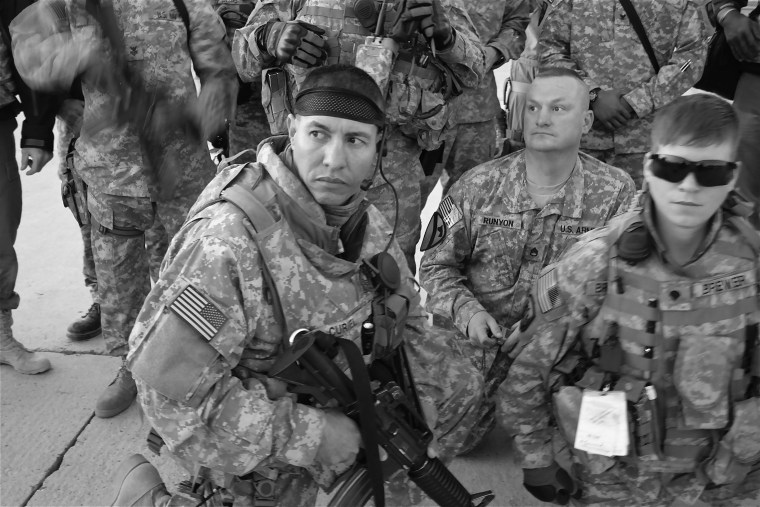 Since America's wars began in Afghanistan and Iraq, I have taken photographs of those who volunteered. And whether it was in a forward operating base in Helmand Province days before an expected spring offensive over the mountains from Pakistan, or at one of Saddam's palaces in Baghdad, or in an Apache helicopter flying over Iraq, the same thing most deeply impresses: GRIT.