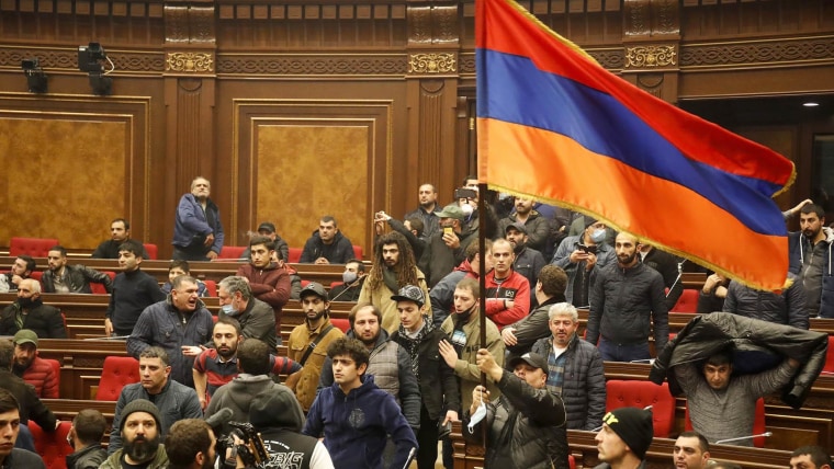 Armenian protesters marched to the prime minister’s official residence in Yerevan, Government House No. 1, after the ceasefire was announced, said local news outlet Norlur.am.