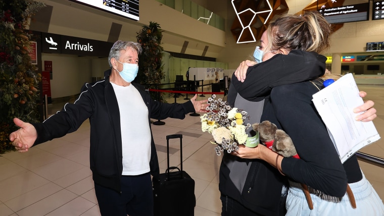 Perth’s airport was the scene of emotional reunions as the first of a scheduled 22 domestic flights and five international flights began arriving on Thursday.