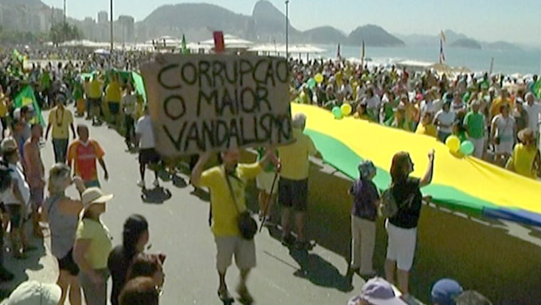 SAO PAULO, Brazil — Hundreds of thousands of demonstrators returned to the streets in dozens of Brazilian cities Sunday to call for the impeachment of President Dilma Rousseff, blaming her for a vast corruption scandal and the economy's worst slump in a quarter-century.