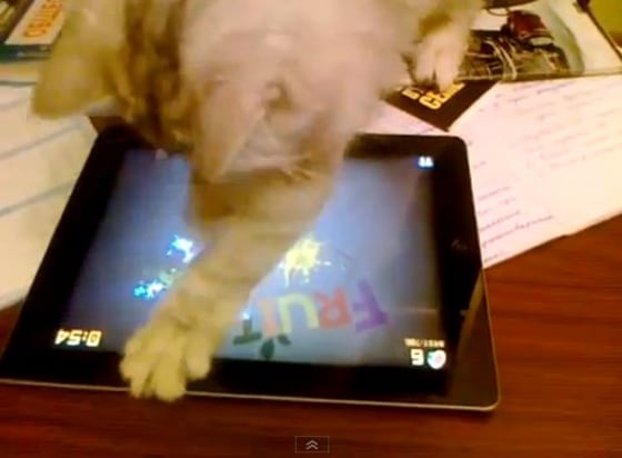 Don't believe it? Check out the video below. The quick-pawed feline earns 128 points — which, much to my ego's dismay, is higher than my very first Fruit Ninja score — while potentially scratching up his or her owner's iPad. (Though it's possible that the kitten's declawed or really skilled and not letting its claws mar the gadget's display.)