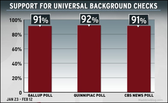 Ok, for those of you who didn't appreciate the humor in the idea that this Senate would have trouble passing spaghetti if it can't handle background checks, here's a more literal look at how popular background checks for gun purchases are with Americans - not so much apples-to-apples as apples, apples and more apples:
