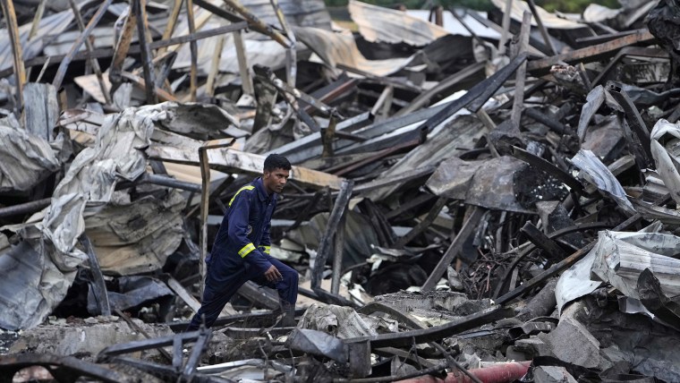 Footage showed firefighters clearing debris around collapsed tin roof structures that media reports said were used for bowling, go-carting, and trampoline attractions.