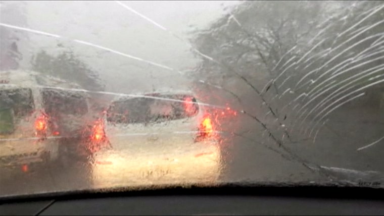 The ferocity of Thursday's storms in Brisbane, Australia was captured on camera by one motorist whose windshield was cracked by golf ball sized hail.