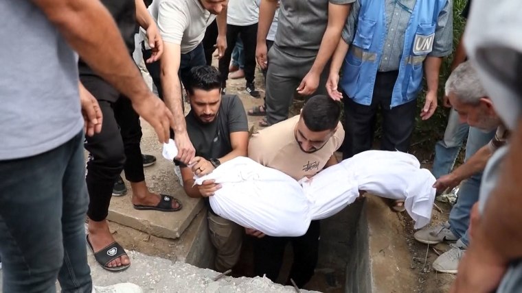 NBC News spoke to several Gaza residents including a gravedigger, a morgue worker and grieving relatives, who detailed overburdened morgues and mass graves filled with unidentifiable bodies in the besieged strip, where health officials say more than 11,200 people have been killed, including more than 4,600 children.