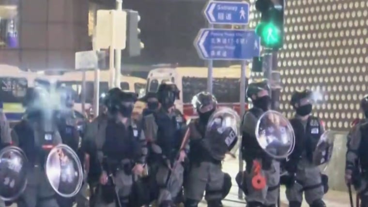 At one mall in the teeming Mong Kok district, also on the Kowloon peninsula, police used pepper spray to disperse some protesters, according to cable television.