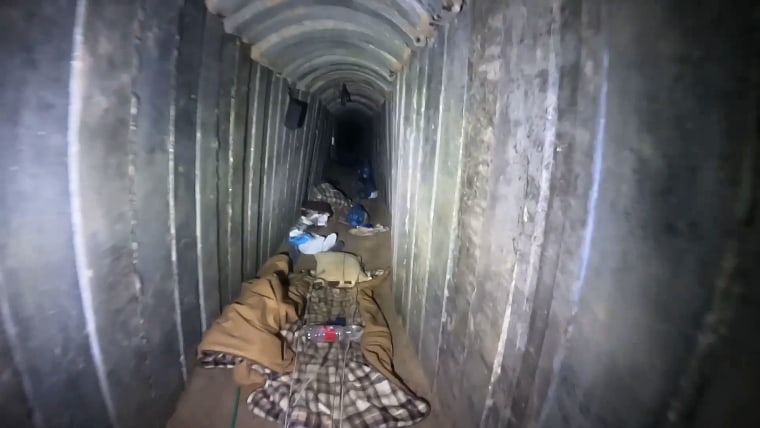 "There are still hostages, 101, some of them are alive in the same conditions in tunnels like this in Gaza, and we need to do everything we can ... to bring them back home alive," Hagari said.