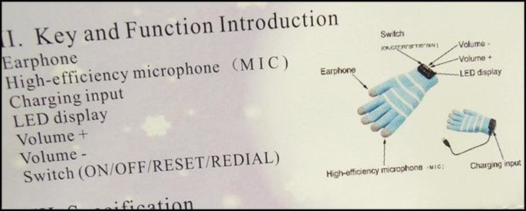 The site is in Japanese, but you don't need much language to figure it out. A speaker in the thumb, a microphone in the pinky, volume on the wrist...