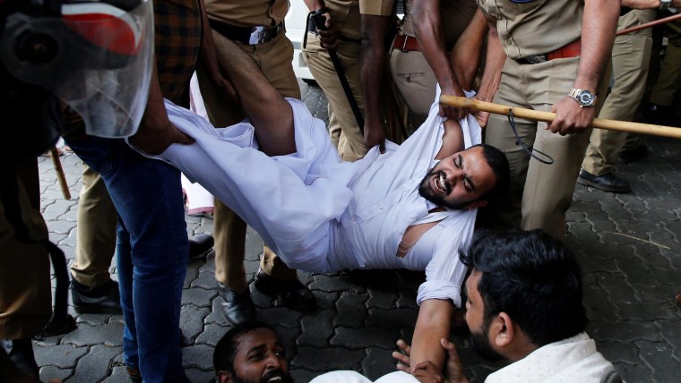 Supporters of Prime Minister Narendra Modi's Bharatiya Janata Party held protest marches in Kerala state as part of a strike call by Sabarimala Karma Samithi, an umbrella organization of Hindu groups.