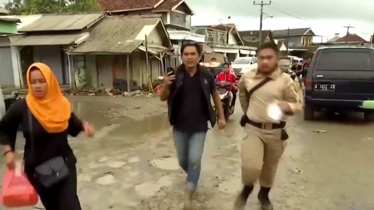 Beaches were largely empty in the hard-hit area of Carita, and police patrolled the area on motorbikes warning people to stay away from the coast. Some people defied the order, returning to what was left of their homes to begin cleaning up as heavy rain fell and waves pounded the shore.