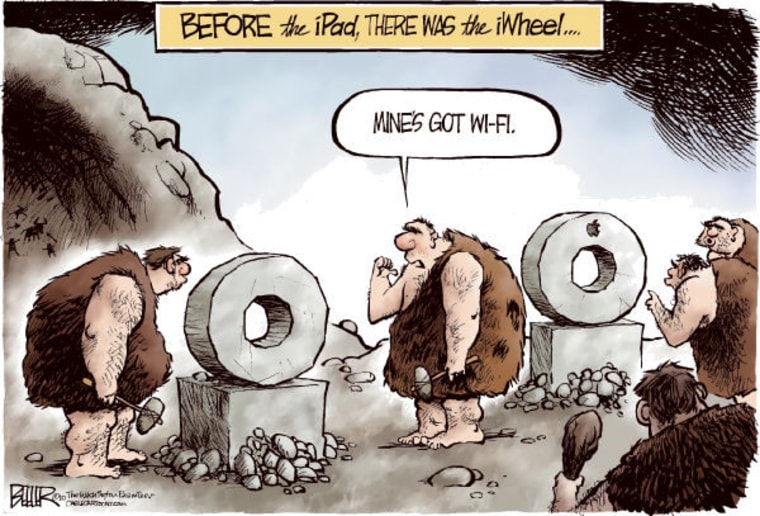 Regardless, we love the iPad (download our free msnbc.com Cartoons iPad app here), and cartoonists always love to draw about the latest fad or newfangled device available for them to play with.