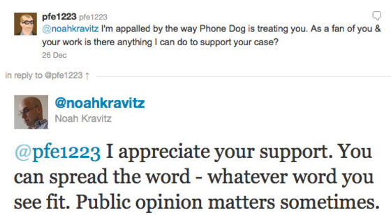 Kravitz, who has gone public to talk about the issue, said when he left, PhoneDog, which covers cellphone news, said he could continue with the "Phonedog_Noah" account in exchange for tweeting for the company "from time to time."