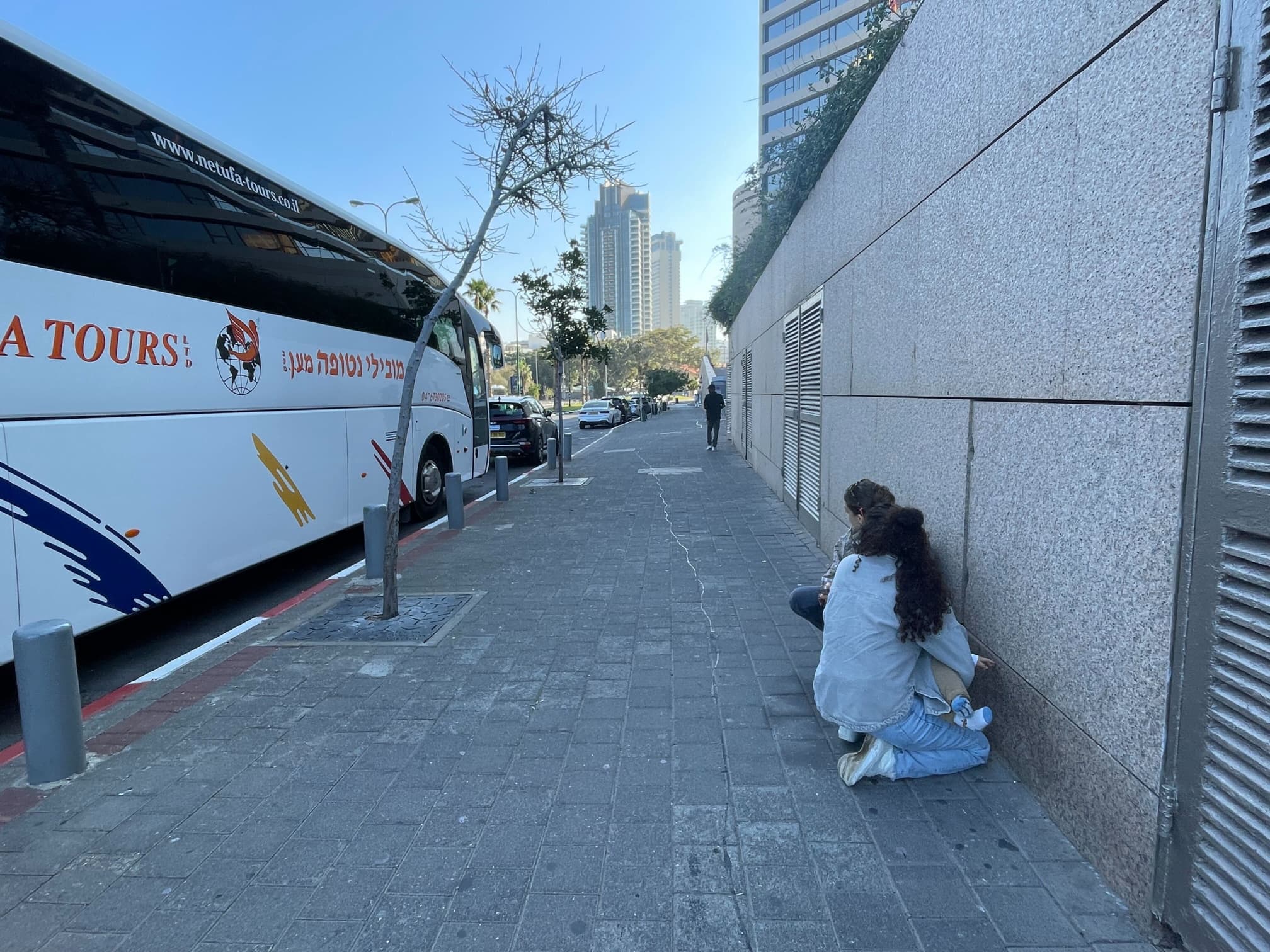 People take cover in Tel Aviv after rare sirens rang on Saturday morning. A rocket was intercepted and there were no injuries. Chantal Da Silva/NBC News