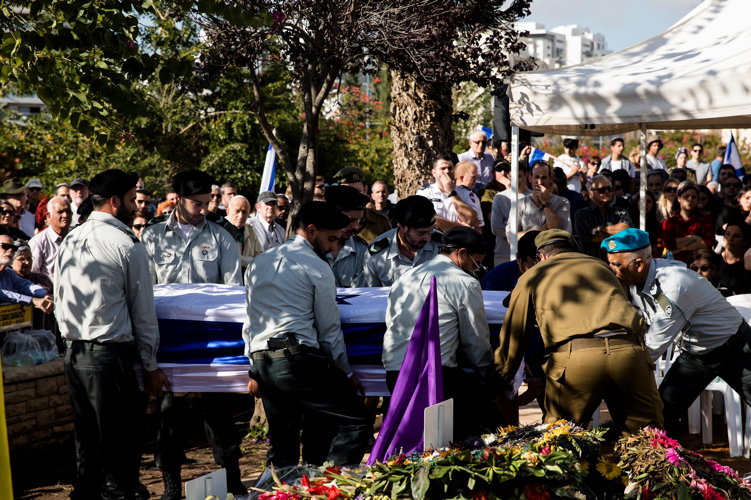 Israeli soldiers carry IDF Master Sgt. Nitai Meisels' coffin in Rehovot, Israel, today. Meisels, 30, an armored fighter in the 14th Brigade, was killed in the northern Gaza Strip. Amir Levy / Getty Images
