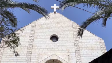 The Catholic church built in 1974 has turned into a refuge for hundreds of displaced Palestinians in the enclave.
