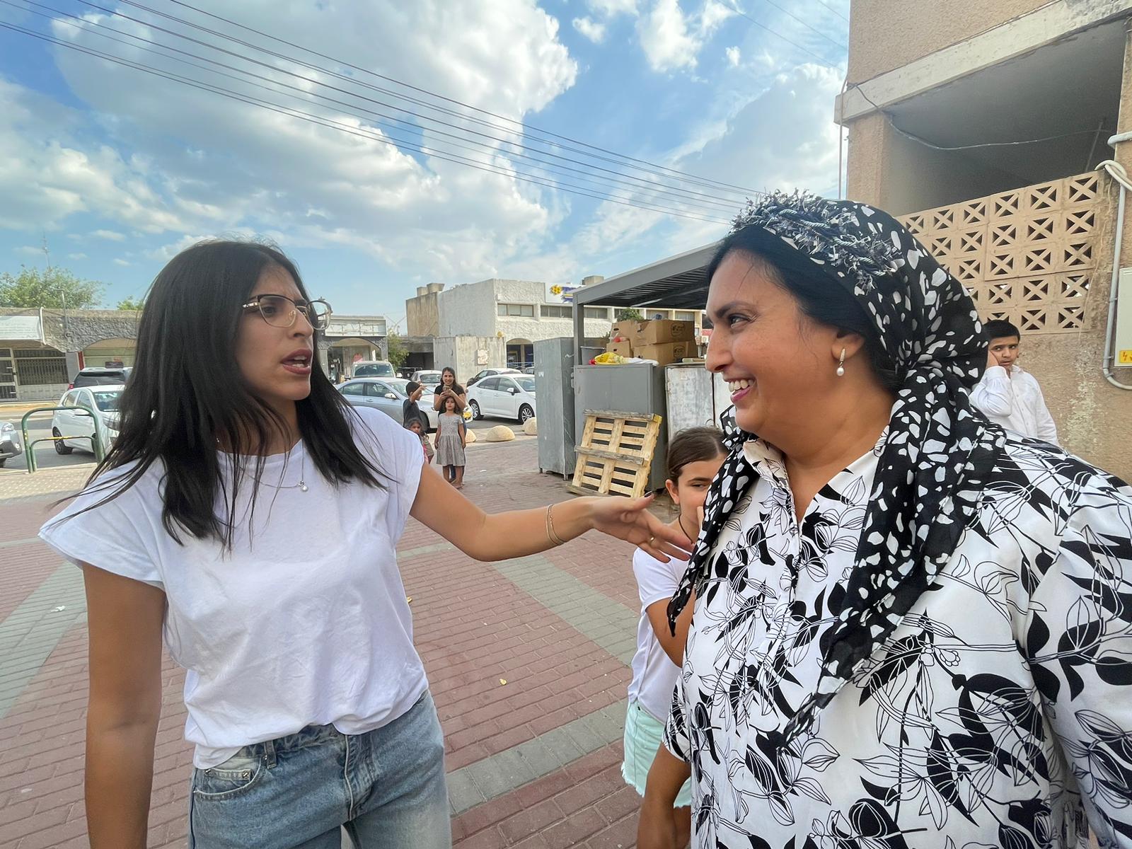 Yael Shushan, right, celebrates the return of Ori Megidish with another neighbor today. Chantal Da Silva / NBC News