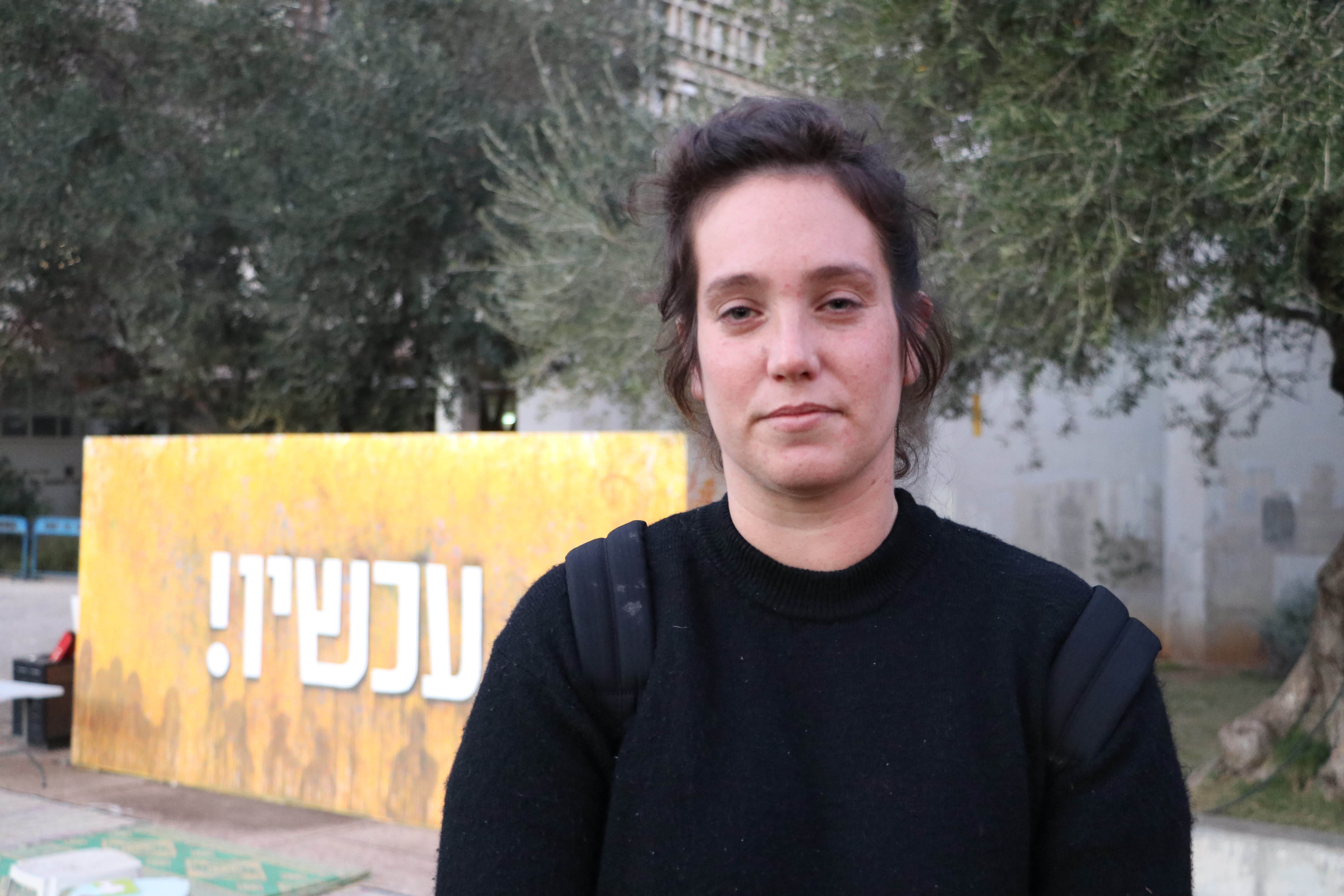 Yifat Zailer, 37, in Tel Aviv's "Hostage Square" today. Chantal Da Silva
