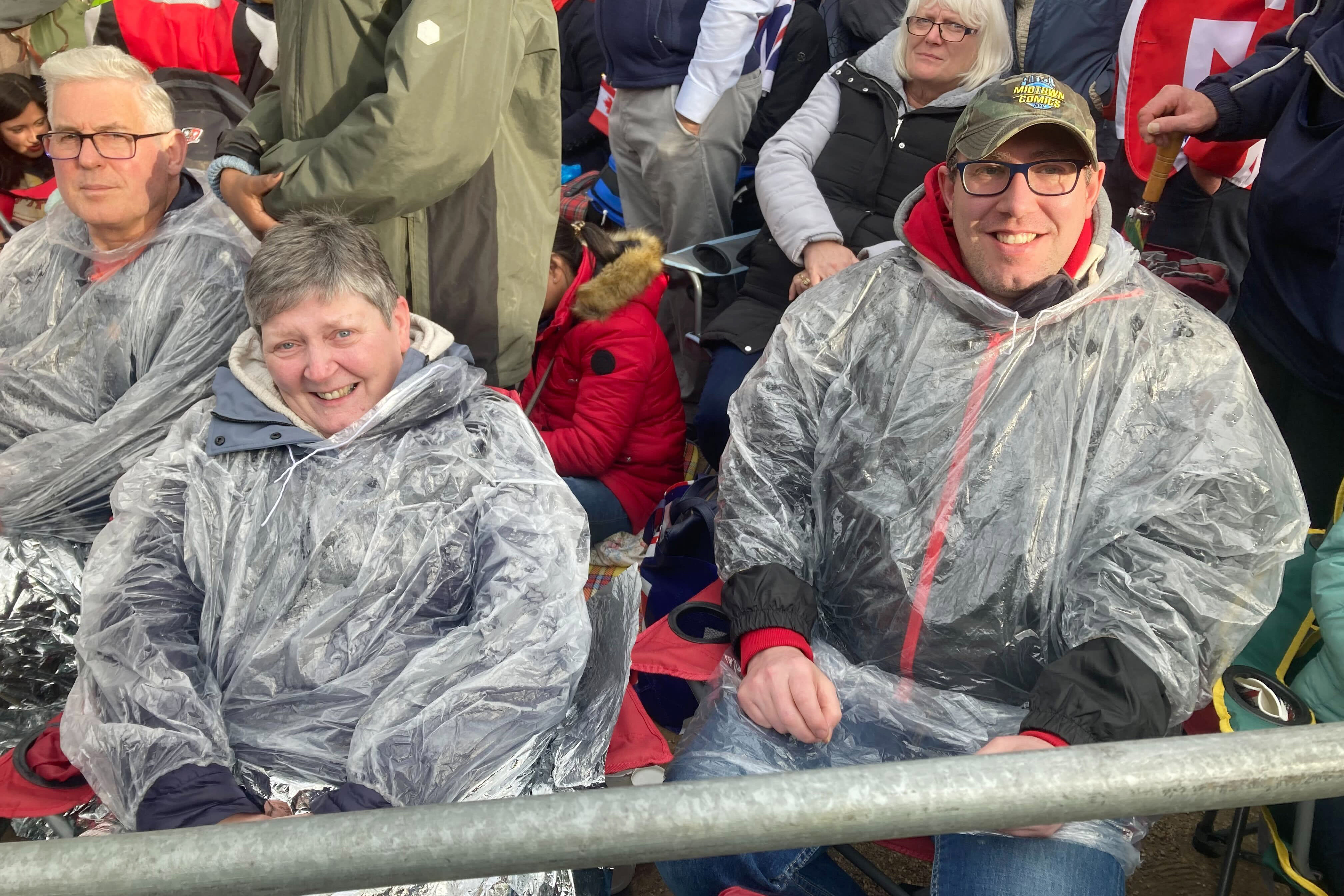Richard Dixon, 38, from Ballymena, Northern Ireland, braves the cold alongside mother, Joyce, 64. The pair arrived Thursday ahead of Saturday’s coronation, and they are clearly ready for the rain.