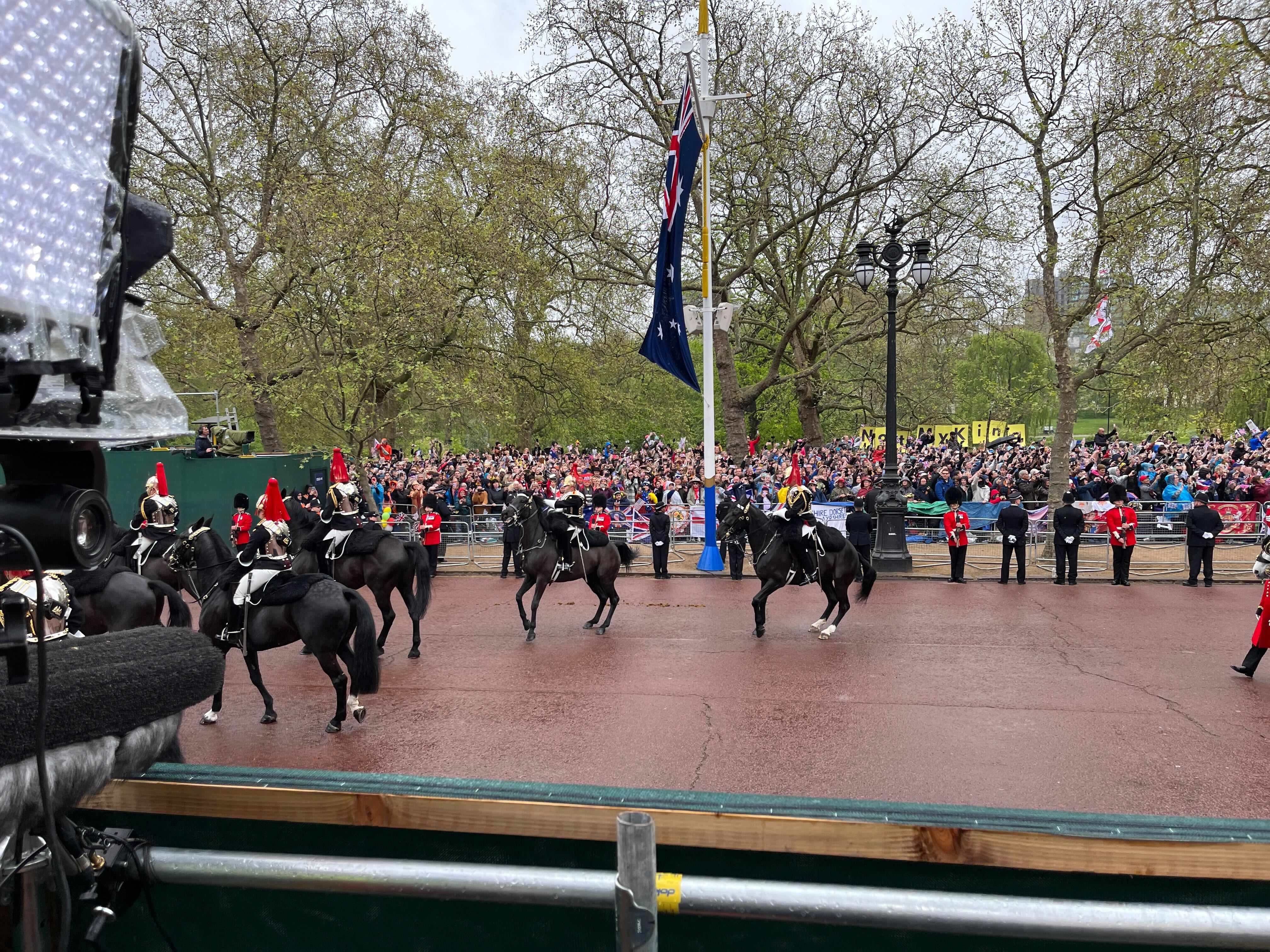 Royal wellwishers are braving the rain and trying their best to find a vantage point on the Mall to watch the king and queen make their way to Westminster Abbey for Britain’s first coronation in 70 years.