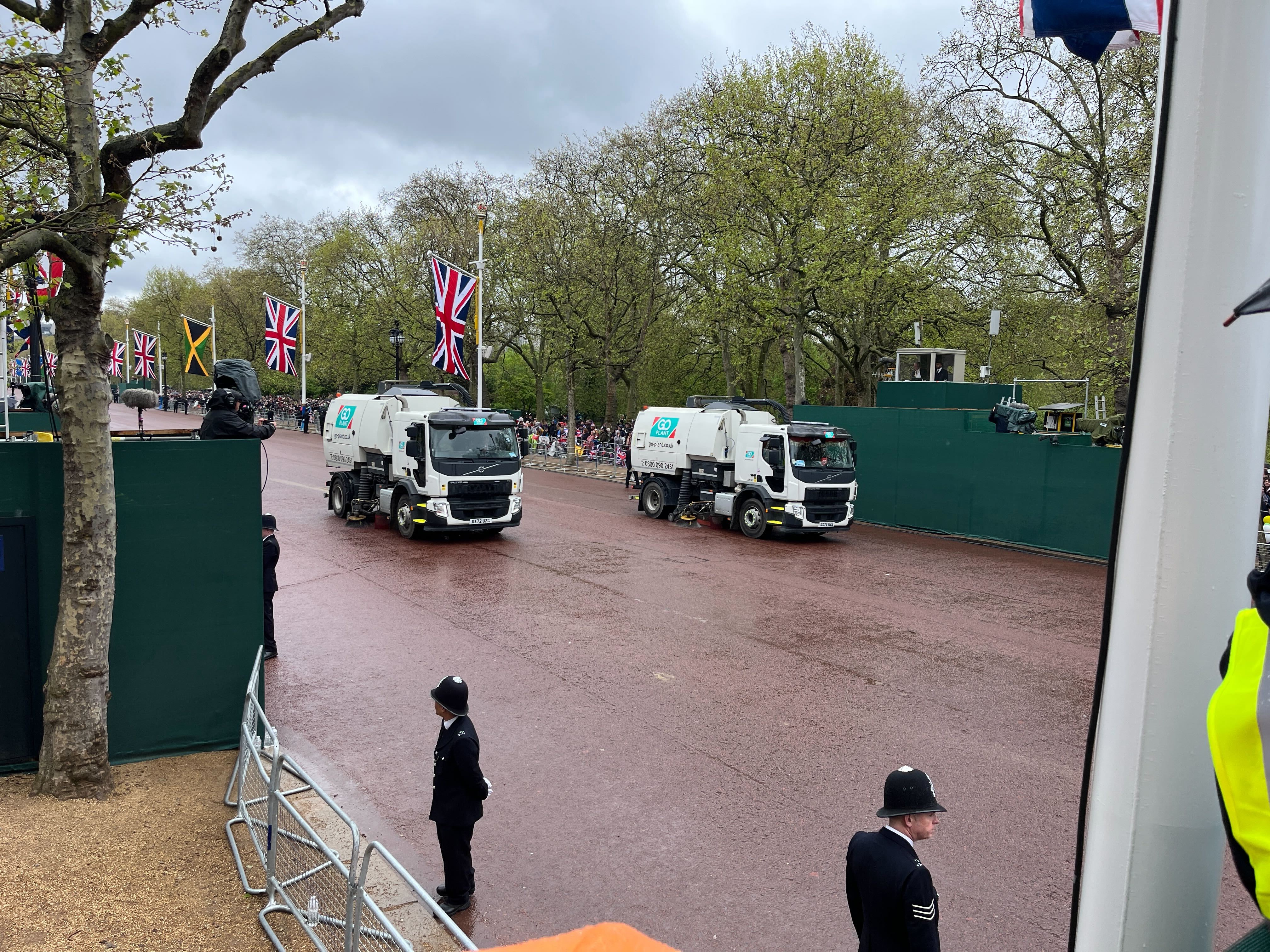 Applause from the crowds wasn't just reserved for royalty — there were also cheers for the street sweepers that followed the procession to Buckingham Palace.