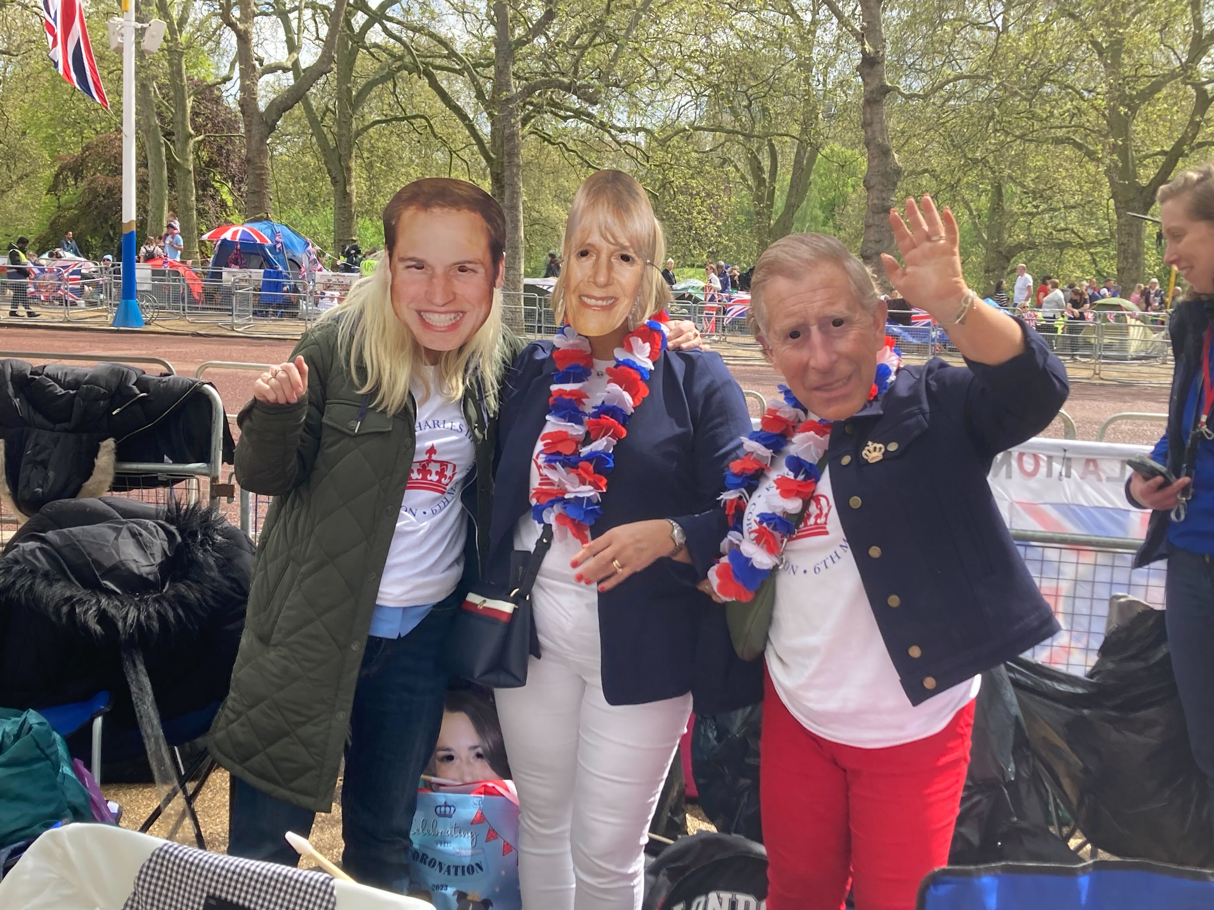 Julie Miller traveled Friday from Belfast, Northern Ireland, with two friends, dressed in red white and blue and masks bearing the faces of the royal family. “We can’t believe we’re here. We planned this from the moment it was announced,” she said. “I think he will be a great king. This is what he’s been born for, trained for, and what better idol to etch than the queen.”
