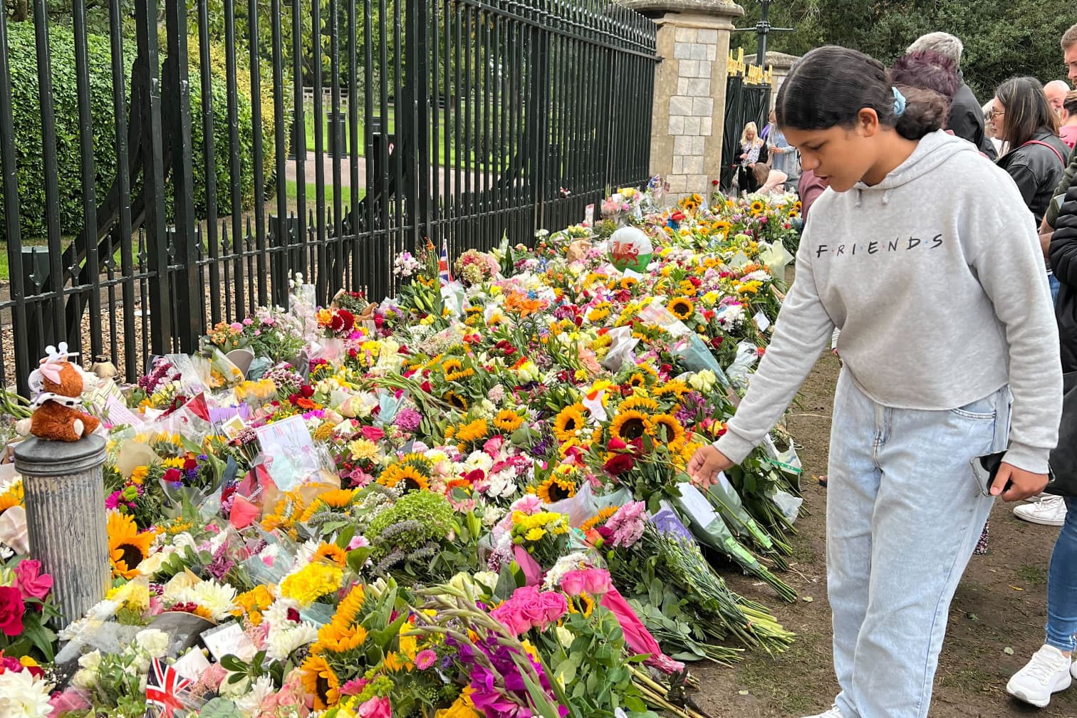 Hundreds have come to pay their respects to the queen, laying flowers outside the gates of the castle.