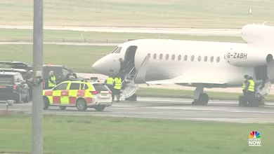 The group arrived shortly after 5 p.m. local time (noon ET), having flown to Scotland.