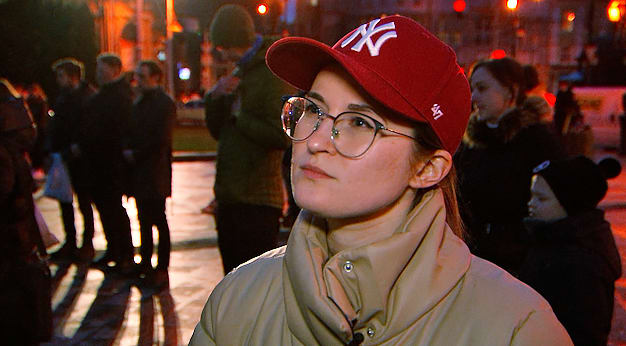 Daryna Voloshyna, 28, attends a vigil for victims of the war in Lviv, Ukraine, on Tuesday. Carlos Huazano / NBC News