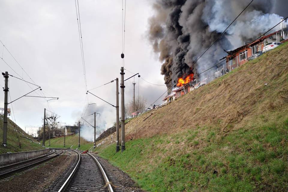 Smoke billows over Lviv