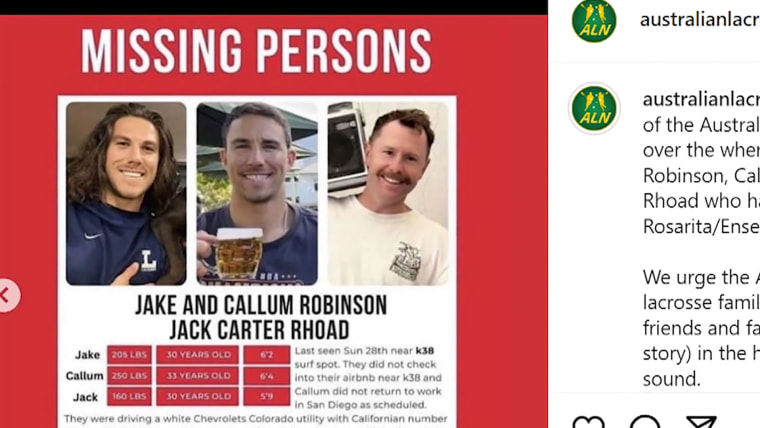 On Wednesday, the missing Australians’ mother, Debra Robinson, posted on a local community Facebook page an appeal for helping in finding her sons, Jake and Callum. Robinson said her son had not been heard from since Saturday April 27. They had booked accommodations in the nearby city of Rosarito, Baja California.