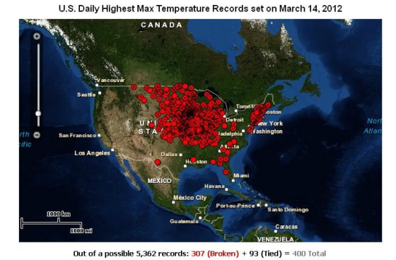 Some 400 sites on Wednesday posted record high temperatures for a March 14, according to the National Climatic Data Center -- and most of those were right smack in the Midwest.
