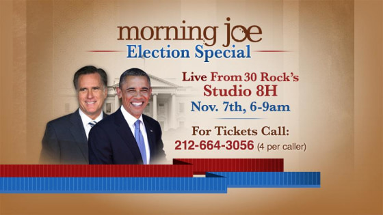 Want to see Morning Joe live? Call now for tickets to the election special live from 30 Rock's Studio 8H on Wednesday, November 7th!