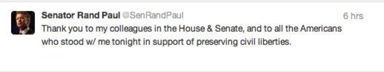 Sen. Rand Paul ends his talking filibuster after nearly 13 hours.