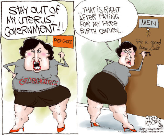 With the talk of Rush Limbaugh’s attack of Georgetown Law student Sandra Fluke still making news, the only cartoon we received so far supporting Rush’s position has come from our conservative cartoonist, Gary McCoy . I thought this right wing cartoon was pretty nasty. In fact, it made me wince. But I thought I’d let you be the judge:
