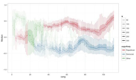 Jason Kottke highlights the infographic above (generated here) showing that House Republicans have grown ideologically more extreme